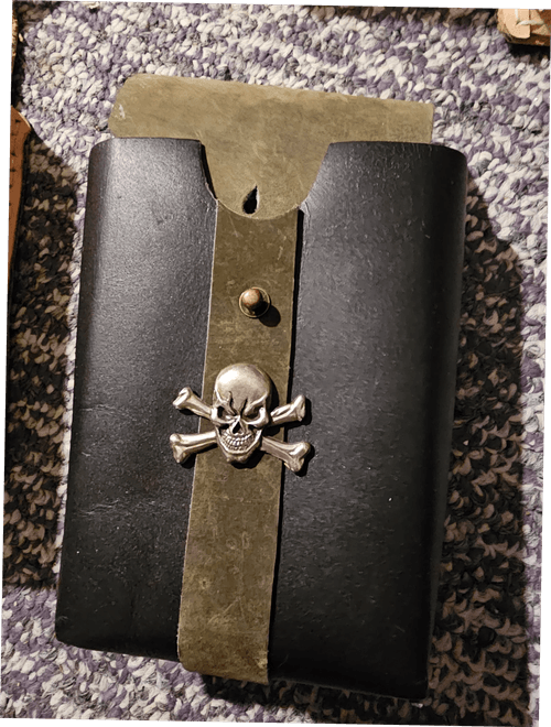 these cute leather bags can hold a mini journal easily that can strap on your belt easily. Hand sewn , leather burned and hand painted.
