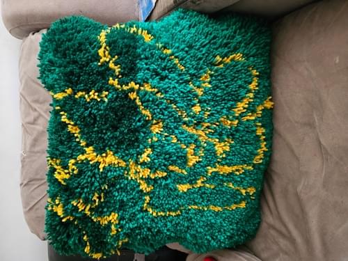 Hand loom weaved each row sewn down, machine safe. This took me over a month to make.
